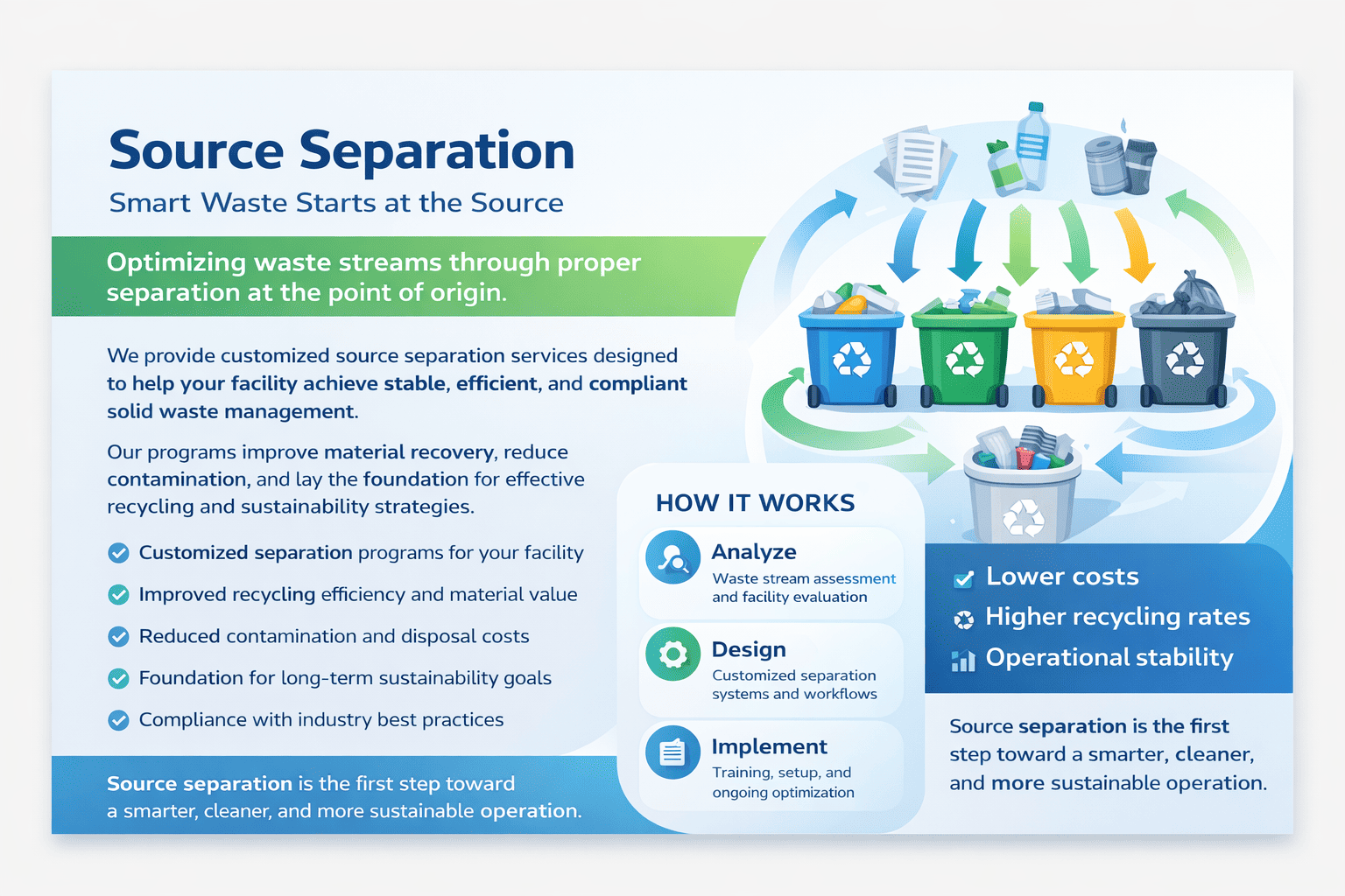 We can provide a variety of services, which may be applied to your facility(s) to achieve stability in solid waste management.