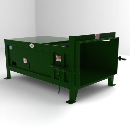 Stationary compactors are designed for maximum compaction of waste materials into a receiver container of various sizes. when the container is full the hauler disconnects the container from the compactor, dumps, and returns the container.